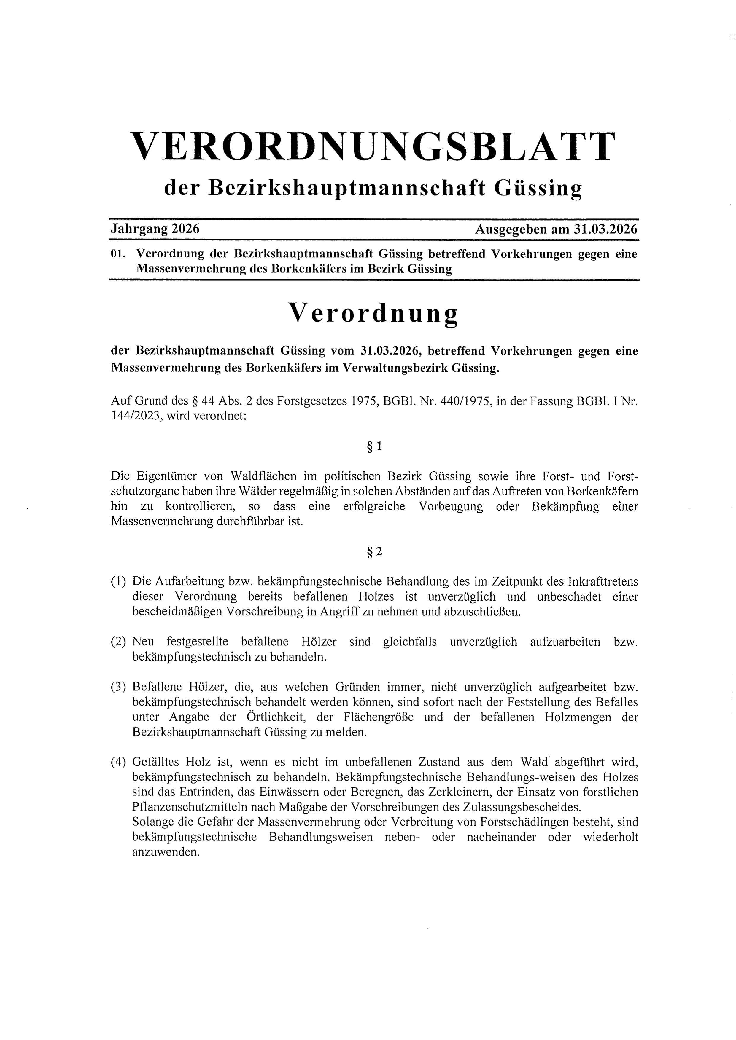 Heugrabenvor 3 TagenVerordnung der Bezirkshauptmannschaft GüssingVerordnung BH Güssing2 Seiten • 0,4 MB